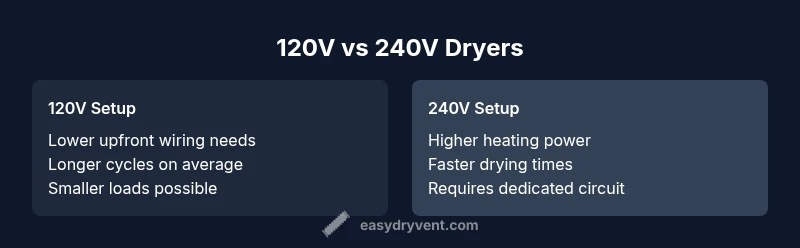 A detailed comparison of 120V vs 240V dryer setups, covering wiring needs, installation, performance, safety, and cost for homeowners.