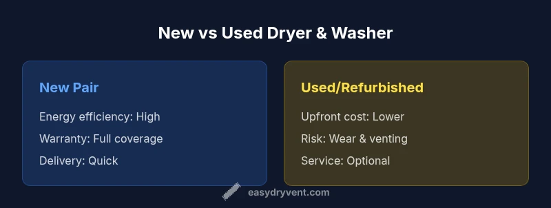 For homeowners evaluating a dryer and washer for sale, the best approach is a balanced view: prioritize energy efficiency, proper capacity, and safe installation, then compare new versus used options. This guide offers a clear comparison, practical checks, and a framework to avoid common pitfalls, all inspired by Easy DryVent's methods.