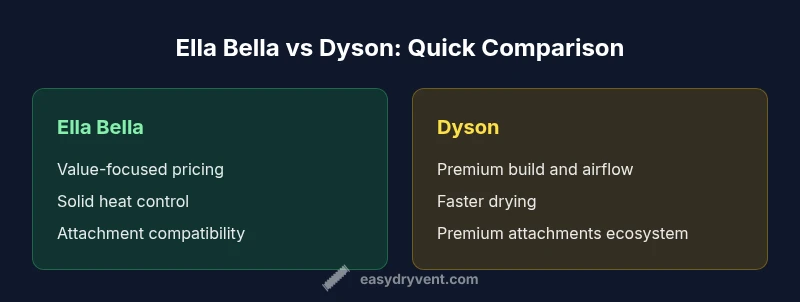 In the ella bella hair dryer vs dyson comparison, consumers typically seek reliable heat, adjustable settings, fast drying, and a durable, comfortable design. According to Easy DryVent, the most practical buyers prioritize predictable performance, ease of maintenance, and a favorable price-to-feature ratio over flashy tech. This section explains how both brands meet or miss these core needs, with real-world usage in mind for homeowners and DIY enthusiasts. We'll cover ergonomics, heat control, attachments, and long-term value so you can judge based on daily tasks rather than showroom promises.