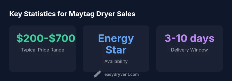 Sourcing a maytag dryer for sale: channels and checks\n\nThe search for a maytag dryer for sale begins with understanding where to look and what to verify. Local classifieds, neighborhood marketplaces, and used-appliance outlets each offer different risk profiles and guarantees. Reputable retailers sometimes run certified refurbished programs with short warranties, which can reduce risk compared with private sellers. According to Easy DryVent, the most reliable deals often come from a mix of sources: you test the unit in person, request a model history, and verify venting status before committing. When evaluating listings, look for obvious signs of abuse, such as dented panels, corrosion around the lint trap, or unfamiliar smells that could indicate moisture damage. Always confirm model numbers and serials, and compare against official Maytag documentation for the exact feature set.