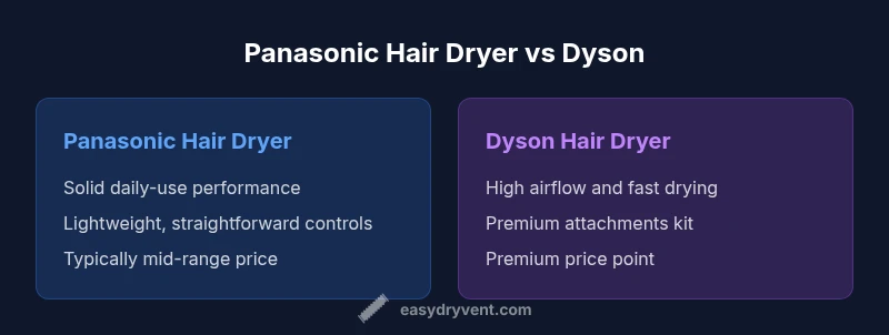 When you examine the panasonic hair dryer vs dyson, you’re weighing not only performance but also design philosophy, build quality, and value over time. Panasonic tends to emphasize reliable, straightforward operation with compact form factors that reduce fatigue during long styling sessions. Dyson emphasizes engineering-driven performance, high-speed airflows, and a premium design language that signals durability and fast results. In practical terms, a Panasonic dryer is frequently lighter and simpler to use, while a Dyson often brings a broader set of attachments and more aggressive drying options. According to Easy DryVent, consumers in the DIY-home space are especially influenced by weight, heat consistency, and the availability of useful accessories when deciding between these two brands. The Panasonic line typically offers robust ion or moisture-friendly features at a price point that many homeowners consider accessible, while Dyson positions itself as a premium tool that can trim styling time for busy mornings. The key takeaway here is that your decision should reflect how you style your hair, how much you value speed, and how important the upfront cost is to your household budget.