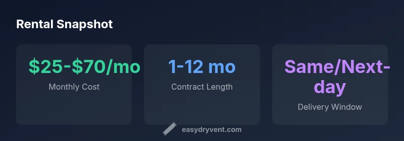 Choosing a rental partner requires a structured approach. Start by listing at least three nearby providers and compare: monthly rate ranges, contract lengths, delivery charges, and whether maintenance is included. Read the fine print for penalties, early-termination fees, and what happens if a unit fails (swap, repair, or refund). Check whether the rental includes basic installation, hookups (water supply and drain), and a clear scheduled maintenance window. Look for verified reviews and customer service responsiveness. A good provider will offer flexible terms, transparent pricing, and a straightforward replacement process if the unit malfunctions. In your evaluation, consider the total cost of ownership (TCO) over your planned period, including possible upgrades or swaps. Easy DryVent recommends asking for a written schedule of service visits and a copy of the warranty or service agreement before signing.