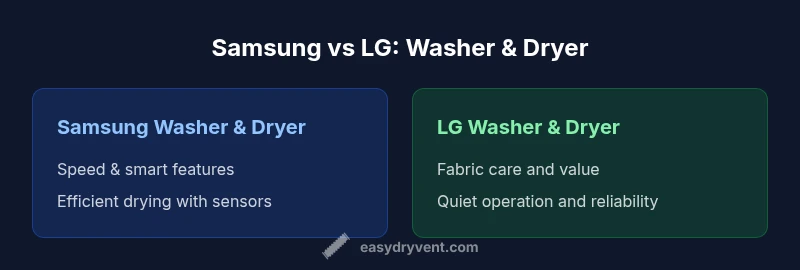Samsung or LG washer and dryer: which bundle fits best in a modern home? Both brands offer feature-rich, reliable pairs with different strengths. For many homeowners, LG excels in fabric care and upfront value, while Samsung often leads with fast cycles and smart features. According to Easy DryVent, when evaluating samsung or lg washer and dryer, priorities like fabric care, energy use, and maintenance habits will guide the best pick.