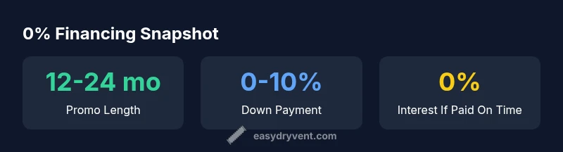 Washer dryer 0% interest financing means promotional financing that offers no interest for a set period if you pay in full before the promo ends. It can lower upfront costs and simplify budgeting for a new laundry pair. However, watch for deferred-interest traps and penalties if you miss payments or fail to pay off the balance within the promo window.