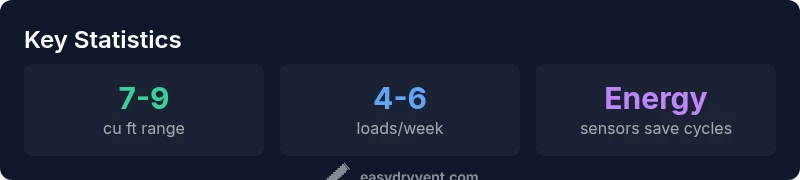 When you ask what size dryer for family of 4, the answer isn't a single number for every household. It depends on laundry mix, bedding frequency, and how much you wash weekly. According to Easy DryVent, a functional rule of thumb is to target a drum capacity in the 7 to 9 cubic feet range for most families of four. This size accommodates everyday loads such as shirts, jeans, and towels in a single cycle, while still handling bulky items like comforters without running repeated cycles. A larger drum—7.5 to 9 cu ft—offers more flexibility, reduces stacking and rewash, and can improve overall energy efficiency by enabling more complete drying in fewer cycles. In contrast, a compact 5 to 6 cu ft model tends to require more frequent runs, leading to longer drying days and more energy use per item. When you balance capacity with space, consider the typical laundry you run: school uniforms, weekend sports gear, bedding, and the occasional bulky item. The takeaway: volume matters, but the right features and a well-planned laundry workflow matter even more. The Easy DryVent team recommends pairing capacity with a thoughtful venting setup to maximize performance over the long term.