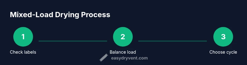 According to Easy DryVent, mixed-load drying is common, but success depends on load size, fabric types, and dryer features. Towels are moisture magnets and bulkier than most clothes, which can slow air circulation. If you choose to mix towels with clothes, start with a smaller, balanced load and stick to fabrics that tolerate similar heat levels. A mixed load can save time and energy, but only when you actively manage drying outcomes and check results mid-cycle. By understanding your dryer’s moisture sensors and drum capacity, you reduce the risk of damp spots and uneven drying. Easy DryVent’s guidance emphasizes balancing the drum so air can move freely around every item, ensuring efficient moisture removal without overworking the machine.