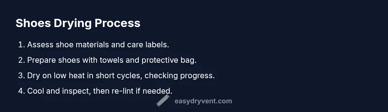 Drying shoes in a household dryer is a common question for homeowners and DIY enthusiasts. The short answer is: it depends on the shoe type and how you prepare them. Some fabrics tolerate gentle heat, while others can warp, crack, or weaken adhesives. Before you try, always read the care label and inspect construction. According to Easy DryVent, following the label and using cushioned drying methods substantially lowers risk. The Easy DryVent team found that careful preparation and short, low-heat cycles dramatically reduce the chance of damage. This guide walks you through which shoes can be dried, how to prepare them, and safer alternatives if you’re unsure. By the end you’ll know when to skip the dryer and how to minimize lint buildup and wear on your appliances. The key is to balance drying speed with material safety, using the dryer only when it’s appropriate and always with protective cushioning.