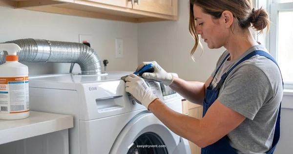 - Quarterly: Inspect the vent hose and exterior vent cover. Clear any lint clogs from the vent hood, and verify the duct route has no kinks or bends that restrict airflow.