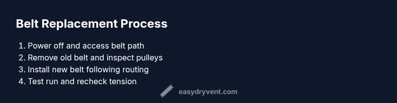According to Easy DryVent, you can successfully replace a Whirlpool dryer's belt by disconnecting power, gaining access to the belt area, and installing a correctly sized replacement while routing it precisely around the drum and pulleys. Gather common hand tools, follow the step‑by‑step process, and test the unit before resuming normal use. This task requires patience and careful belt routing to avoid misalignment.