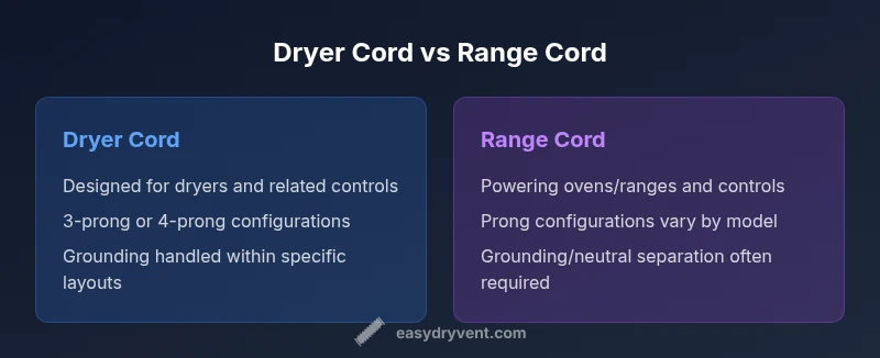 In households across North America, clothes dryers and electric ranges share electrical infrastructure, yet they rely on different cord designs and outlet standards. The difference between a dryer cord and a range cord matters for safety, reliability, and code compliance. Using the wrong cord can disrupt grounding, create heat buildup, or cause tripped breakers. For homeowners and DIYers, recognizing these distinctions is the first step toward safer installations and longer appliance life. According to Easy DryVent, safe cord selection starts with matching the appliance type to the appropriate outlet configuration. This alignment reduces the risk of electric shock, wiring damage, and noncompliance with local electrical codes. As you read, keep in mind that cords are not universal parts; they are purpose-built for specific devices and environments.