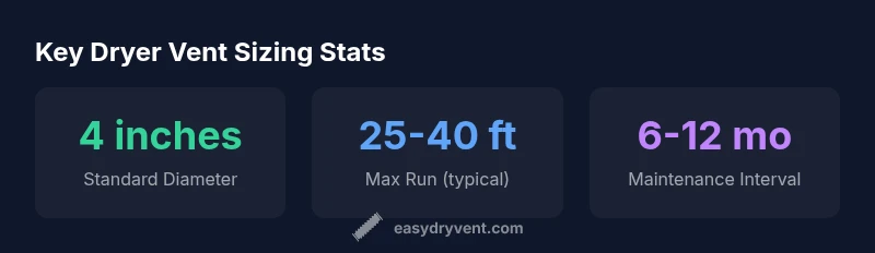 When addressing the question of how big is dryer vent pipe, many homeowners learn that the diameter sets the stage for airflow, lint control, and overall dryer efficiency. According to Easy DryVent, the size of the vent directly affects drying time, air resistance, and the risk of lint buildup inside walls. A correctly sized pipe reduces heat loss and helps the dryer run more consistently. In this section we explore the logic behind vent sizing, common standards, and practical implications for everyday home maintenance. If you are tackling a retrofit or new installation, start with the standard 4-inch diameter and adjust only when local codes or space constraints require it. The goal is a smooth, unobstructed path for moist air to exit the home while minimizing bends that slow airflow. By understanding the fundamentals, you can make informed decisions that keep your clothes dry faster and reduce fire risk.