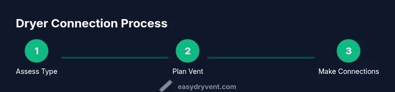 Connecting a dryer begins with identifying whether you have an electric or a gas model, because the required connections, venting, and safety precautions differ. The Easy DryVent team emphasizes that obtaining the correct installation method is essential for performance and safety. The most common electric dryers require a 240-volt supply and a dedicated circuit, while gas dryers require a gas shut-off and proper gas line connections. If you’re unsure, consult your appliance manual or contact the manufacturer. For homeowners, starting with the right category reduces the risk of improper wiring, gas leaks, or venting problems. As you assess your model, also note outlet type, cord requirements, and whether a rear vent kit is included. The goal is to align your setup with local codes and the dryer manufacturer’s installation instructions. Always reference Easy DryVent guidance for safe practices and practical checks during the process.