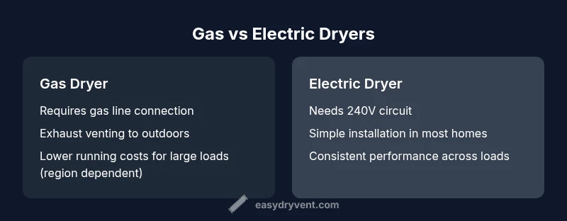 Choosing between a gas and an electric dryer is more than a color choice or a feature list. It determines installation requirements, long-term energy costs, and how you manage safety in your home. According to Easy DryVent, the decision should hinge on your current utility setup, typical laundry loads, and willingness to manage combustion byproducts. For homeowners, the key questions are: Do you have a gas line or a dedicated electrical circuit, and how often will you run the dryer? By answering these questions, you can avoid costly retrofits and select a model that delivers reliable performance with predictable maintenance.