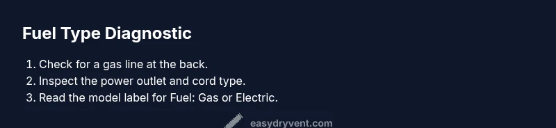 To tell if your dryer is gas or electric, start with simple exterior clues, then confirm with the model label and outlet or gas line. Electric dryers typically use a 240-volt outlet and have no gas line, while gas models connect to a gas supply and vent through a standard exhaust. Follow the step-by-step checks to be sure.