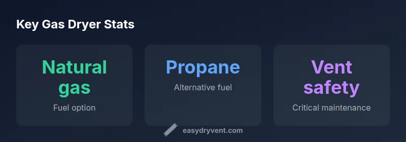 Gas dryers usually run on natural gas or propane, chosen during installation. Always confirm the fuel type and follow safety guidelines.