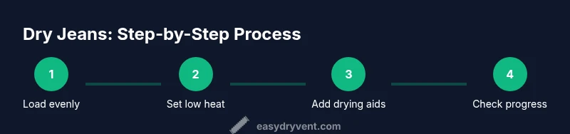 Denim fibers are sturdy but not indestructible. High heat and aggressive tumbling can cause cotton fibers to shrink unevenly, fade color, and wear thin at the seams. Understanding the basic physics of drying helps explain why the question what dryer cycle for jeans matters. According to Easy DryVent, denim dries more evenly when heat is controlled and agitation is kept moderate. This is especially important for darker indigo fabrics, where uneven exposure can exaggerate color loss. For most jeans, the goal is to stop the dryer as soon as the fabric feels dry to the touch, then move to a cooler phase or air-dry if possible. By treating denim with care in the dryer, you extend wear life and reduce the need for repairs later. The balance between comfort, appearance, and longevity hinges on simple decisions about cycle selection, heat, and duration. Keeping these factors in mind will help you establish a routine you can repeat weekly without fear of shrinking or pilling. The Easy DryVent team emphasizes consistency as a practical habit for denim care.