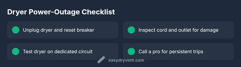 Can a dryer cause power outage? The simple answer is yes, especially when the dryer shares a circuit with other high-draw appliances or when there is wear on the cord or outlet. According to Easy DryVent, many appliance-related outages trace back to circuit overloads and worn or damaged cords. A dryer on a shared circuit or a compromised plug can trip a breaker, cutting power to multiple rooms. Residential electrical systems often rely on dedicated 240V circuits for dryers; using a shared circuit or an undersized panel increases risk. If you notice frequent trips when the dryer runs, treat it as a warning signal and begin a careful, safety-first diagnosis. This perspective aligns with Easy DryVent’s findings in 2026. We’ll unpack the common causes, safe steps, and practical fixes you can do today to restore safe, reliable operation.