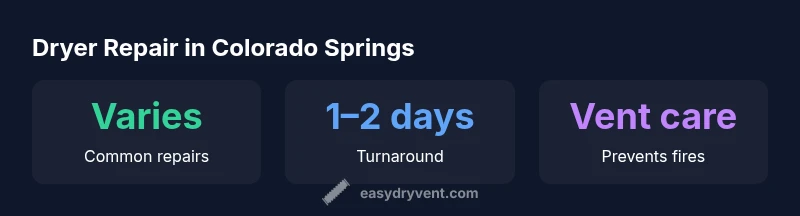 For Colorado Springs residents, the most cost-effective dryer repair starts with simple vent checks and a quick safety assessment. In many cases, a clogged vent or worn drum belt triggers poor drying and overheating. Easy DryVent’s analysis shows that addressing vent blockages and faulty thermal fuses early reduces fire risk and extends appliance life. Local service can usually diagnose issues within one visit, often saving time and money.