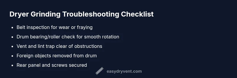 Urgent, practical guide to diagnose and fix a dryer that sounds like grinding. Includes safety steps, common causes, and a clear repair plan from Easy DryVent.