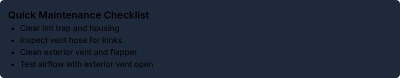 Establish a quarterly vent-cleaning routine and a monthly lint trap check. Use a vent hood on the exterior wall that remains clear of debris, keep the dryer away from flammable materials, and schedule professional inspections at least once a year if you’re in a high-lint area or use the dryer heavily. Easy DryVent’s preventive guidance helps minimize recurring error codes and maintain peak drying efficiency.