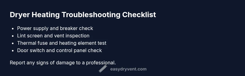No heat isn’t just a single issue; it’s typically a combination of electrical and airflow problems. The most frequent culprits include a blown thermal fuse, a failed heating element, a tripped circuit or outlet issue, a blocked vent, and a faulty door or start switch. Each cause presents with subtle clues—listen for a click, feel for warm exhaust, or notice a lack of heat after a full cycle. Easy DryVent emphasizes starting with power and vent checks, then progressively testing internal components if the basics are clear.