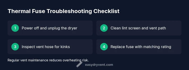 Most often, a dryer's thermal fuse blows from overheating caused by restricted airflow or lint buildup. Start with the simplest checks: unplug the unit, clean the lint screen, and inspect the vent hose for kinks or blockages. If airflow is clear but the fuse remains blown, replace the fuse and test on a low-heat cycle.