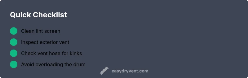 When a dryer isn’t drying properly, the root cause is usually airflow or heat issues rather than a mysterious fault. According to Easy DryVent, the top contributors are lint buildup that blocks the lint screen and vent paths, followed by blocked exterior vents or overly long duct runs. Overloading the drum or using the wrong cycle can also limit air exposure to clothes, leading to damp results. In some cases, a dirty moisture sensor or a failing heating element can cause the dryer to run but not heat effectively. Understanding these factors helps you prioritize fixes that actually restore performance. Start here: inspect airflow first, then verify heating, and only then consider complex repairs. This approach minimizes risk and gets you back to safely dried laundry faster.