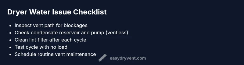 Most often, a dryer that ends up full of water points to venting or condensate drainage problems rather than a simple load issue. Begin with quick checks: unplug the unit, clean the lint screen, and inspect the exhaust hose for kinks or blockages. If water remains, follow the diagnostic flow below for a precise diagnosis and fix.