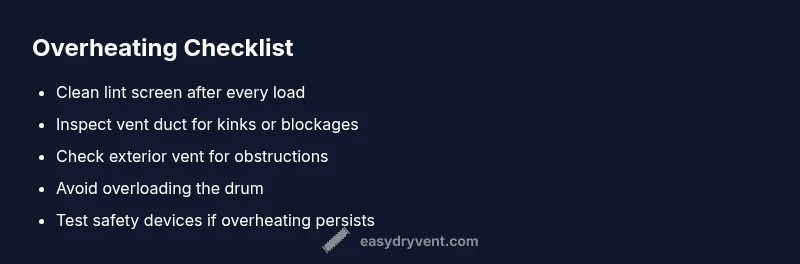 If you're wondering why is my tumble dryer overheating, the short answer is usually restricted airflow or a failing safety component. In modern dryers, heat is generated by the drum's heater and circulated by a blower. When lint, dust, or a kinked vent blocks that airflow, the dryer runs hotter than intended, and sensors may shut it down to prevent a fire. According to Easy DryVent, overheating is commonly preventable with regular lint-filter maintenance and vent cleaning. Easy DryVent Analysis, 2026. This article from Easy DryVent explains how airflow paths, heat generation, and safety interlocks work together, and why routine maintenance matters for both safety and efficiency.