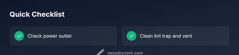 Before you dig into components, perform a few quick, safety-minded checks. Always unplug the unit before touching any internal parts. Inspect the power cord for visible damage and ensure the outlet is delivering power (test with a lamp or another device). Reset the household circuit by flipping the breaker off and on. If the dryer still won’t respond, verify the door/lid switch is engaging correctly, and listen for the door interlock click when you close the door. Clearing a blocked lint trap is also essential; stagnation here can trigger overheating and shut down the dryer mid-cycle. These steps cover the majority of non-mechanical faults and set the stage for deeper diagnostics. Easy DryVent recommends performing these checks first to minimize risk and avoid unnecessary repairs.